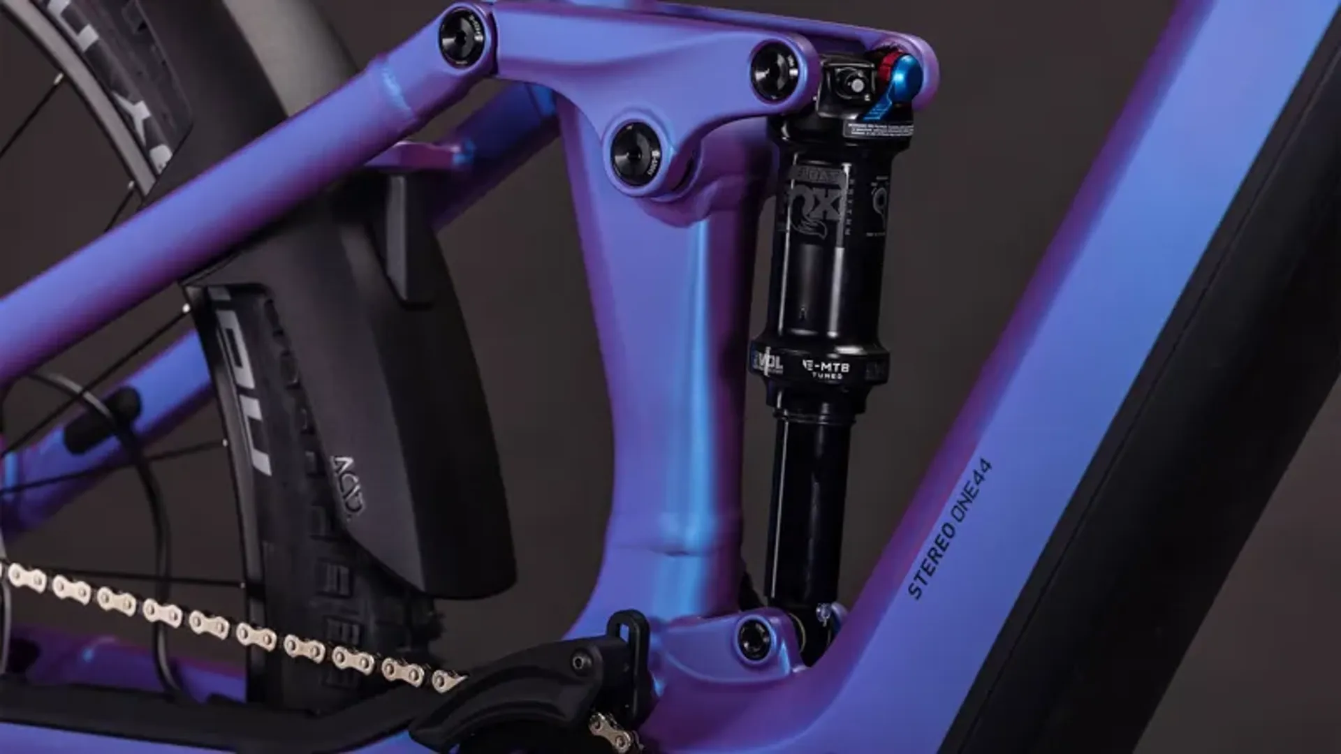 The Stereo Hybrid ONE44 EXC 800 sports Fox's smooth, accurate 36 Float AWL fork and a matching Float Rhythm RC shock.