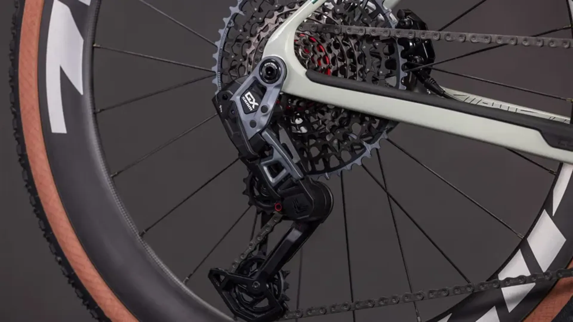 Gravel-specific and with a deep rim designed to provide a measurable aero advantage at typical race speeds, these wheels are shod with Schwalbe's fast-rolling 45mm G-One RX Pro tyres and feature Sram's Force AXS hydraulic disc brakes. Rugged, reliable shifting is served up by Sram's GX Eagle 1x12 Transmission, and there's a Sram Force crankset with built-in power meter so that you can keep an eye on your performance.