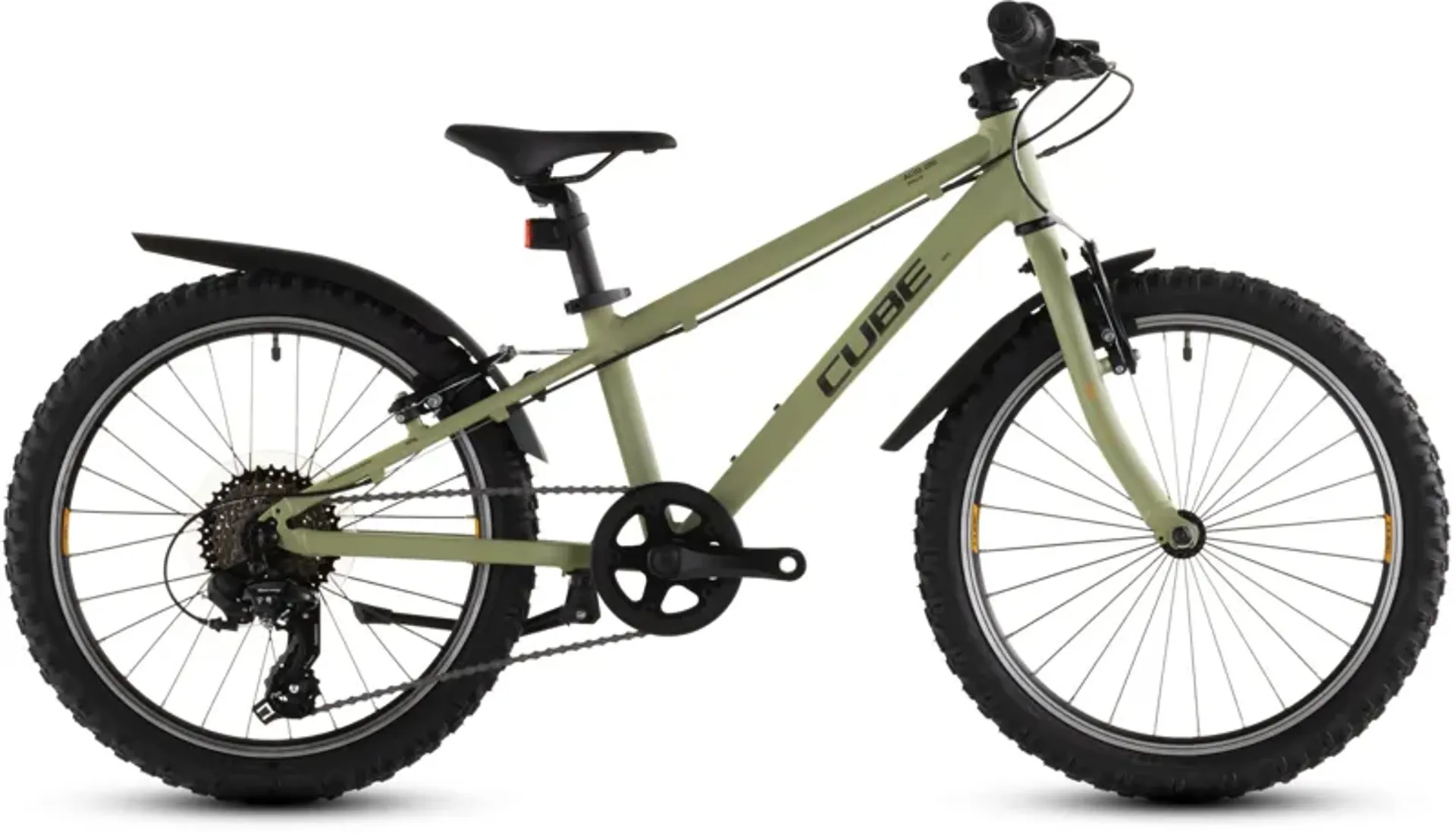CUBE does not cut corners, and that's not just talking about the lights and mudguards that come as standard on the Acid 200 FE. Its frame features the same 6061 aluminium and attention to detail as CUBE's adult bikes, so you can be assured of its safety and durability. It's also light and tough, because frame tubes designed especially for a young, light rider were used. There's a replaceable gear hanger in case of accidents, and V-brake bosses front and rear are exactly the same as you might find on mum or dad's bike.